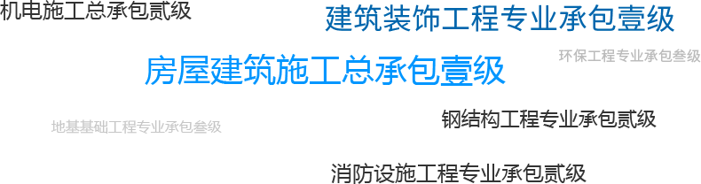 2018年9月18日取得消防設(shè)施工程專業(yè)承包二級、建筑裝修裝飾工程專業(yè)承包二級、市政公用工程施工總承包三級、機(jī)電工程施工總承包三級、地基基礎(chǔ)工程專業(yè)承包三級、鋼結(jié)構(gòu)工程專業(yè)承包三級、環(huán)保工程專業(yè)承包三級資質(zhì)證書